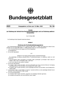 Bundesgesetzblatt Teil I 2023 Ausgegeben zu Bonn am 15. März 2023 Nr. 64 Gesetz zur Stärkung der Aufsicht bei Rechtsdienstleistungen und zur Änderung…
