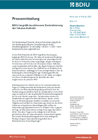 Pressemitteilung BDIU begrüßt beschlossene Zentralisierung der Inkasso-Aufsicht Berlin, den 14. Februar 2023 Seite 1 / 2 Ansprechpartner: Marco Weber Pressesprecher Tel.: 030 2060736-40 Mobil: 0170…