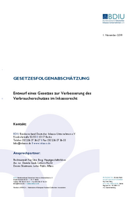 1. November 2019 GESETZESFOLGENABSCHÄTZUNG Entwurf eines Gesetzes zur Verbesserung des Verbraucherschutzes im Inkassorecht Kontakt: BDIU…